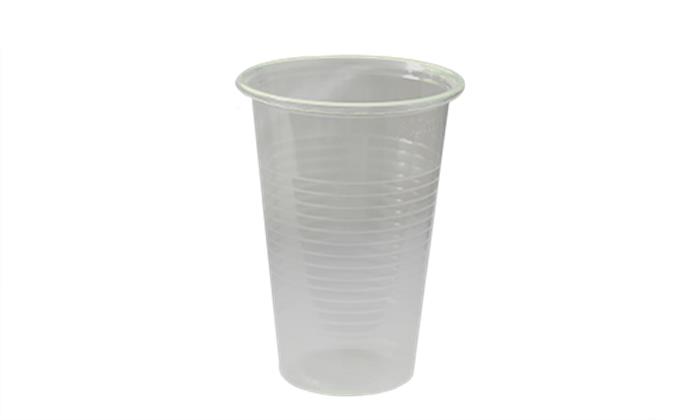Egyszer használatos víztiszta műanyag pohár. Polipropilén anyagból készült.