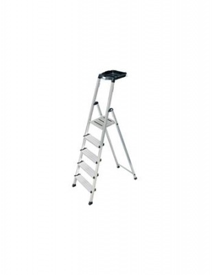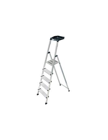 Praktikus és sokoldalú lépcsőfokos állólétra szinte korlátlan tárolási lehetőséggel, vödörtartóval és csúszásmentes dobogóval.