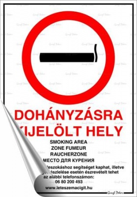 KezdőlapÜzemeltetésLétesítmény üzemeltetésInformációs és tájékoztató jelekInformációs matrica, 21x30 cm, "Dohányzásra kijelölt hely"