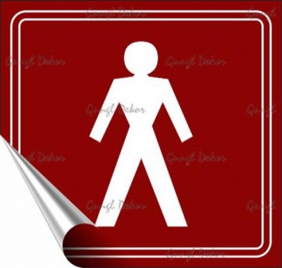 Információs matrica, 8,7x8,3 cm, toalett, férfi szimbólum, burgundi vörös/fehér