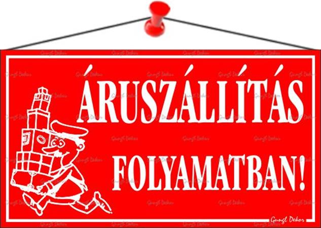 Információs tábla, 22,5x12,5 cm, "Áruszállítás folyamatban!", piros