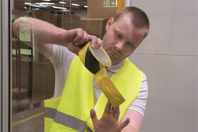 Öntapadó padlójelölő szalag helyhez kötött vagy mozgó tárgyak és felületek ideiglenes azonosítására és jelölésére. A gumiragasztó használata a puha PVC szalagot nagyon jól alkalmazkodóvá teszi.
