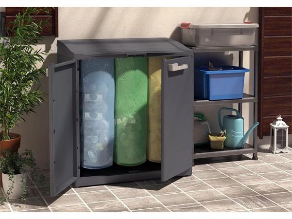 A KETER Moby szelektív hulladékgyűjtő rendszer segít környezettudatosabbá tenni a mindennapokat. Modern dizájnja esztétikusan illeszkedik a kültéri környezetbe.