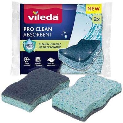 A Vileda Pro Clean viszkóz szivacs a hatékony és higiénikus konyhai tisztítás tökéletes eszköze. A természetes viszkóz anyagból készült szivacs akár tízszer jobb nedvszívó képességgel rendelkezik, mint a hagyományos szivacsok, így gyorsan és hatékonyan kezeli a kiömlött folyadékokat és szennyeződéseket. a szivacs erőteljes súrolófelülete könnyedén eltávolítja a makacs szennyeződéseket, míg a beépített természetes enzimek lebontják a zsíros maradványokat, így a szivacs akár 2 hónapig higiénikus marad. Ez a kombináció ideális választássá teszi a mindennapi konyhai feladatokhoz, különösen azok számára, akik környezettudatos és hatékony megoldást keresnek.